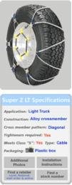 Security Chain Company Super Z LT Light Truck and SUV Traction Chain is designed for virtually every type of use from passenger cars, SUVs to trucks, airport transporters, ATVs, garden tractor to snowblowers and forklift machines.